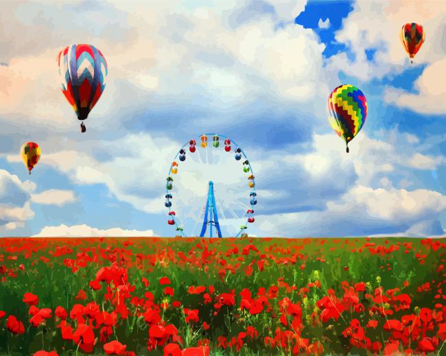 What’s In Ferris Wheel In Poppies Field Paint By Numbers kit ?