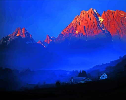 What’s In Pyrenees Mountains At Sunset Paint By Numbers kit ?
